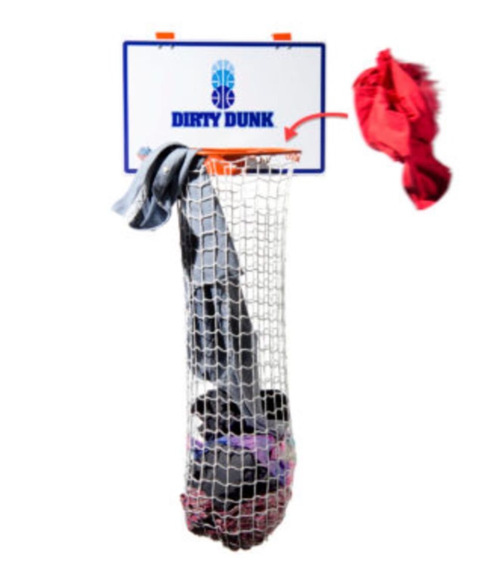 Combine target practice, game-time, and clean-up with one product! This basketball hoop laundry hamper is a great laundry solution for a kid's bedroom or the family bathroom. You can install it in seconds--in fact, I'm not sure it's fair to say you have to "install" it, because all you do is hang the padded hooks over the door! The bottom of the netting has a clever release mechanism, so you can dump clothes out into a basket without taking the hoop off the door.Enjoy Clean and Quiet Sensory Play With This Bucket of Floof