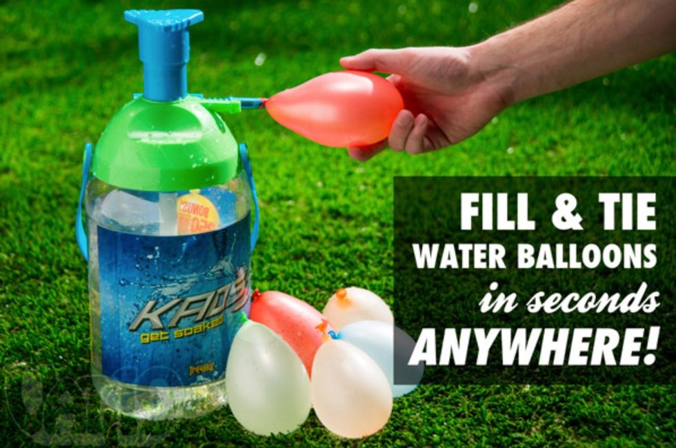 Warmer weather calls for barbecues, soaking up the sun, and--of course--launching water balloons at your family members whether they like it or not. Cut down on the miserable part of making water balloons and increase your fun exponentially with this Water Balloon Station. Fill the jug with water, then fit a balloon over the nozzle and pump a few times to fill 'er up. There's a clever mechanism that ties the balloon shut with a twist of the wrist, and it's ready for action! The station includes 250 balloons to get your fun started.Feast Upon the World's Largest Gummy Bear