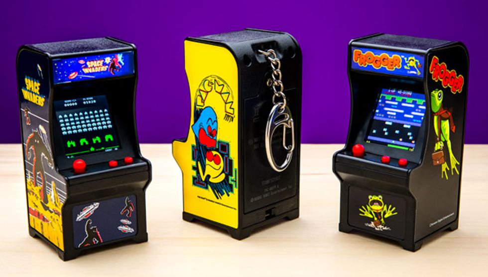 Introduce your kids to the fun of Pac-Man, Frogger, and Space Invaders, all sized for small hands and perfect vision! These pocket-sized versions of popular arcade games of yore are small enough to work as a keychain, but are fully functioning games with all the graphics and levels you remember and love. Each game is 3 1/2 inches of pure nostalgic fun!Steal Cows With Your Spaceship on This UFO Logic Puzzle