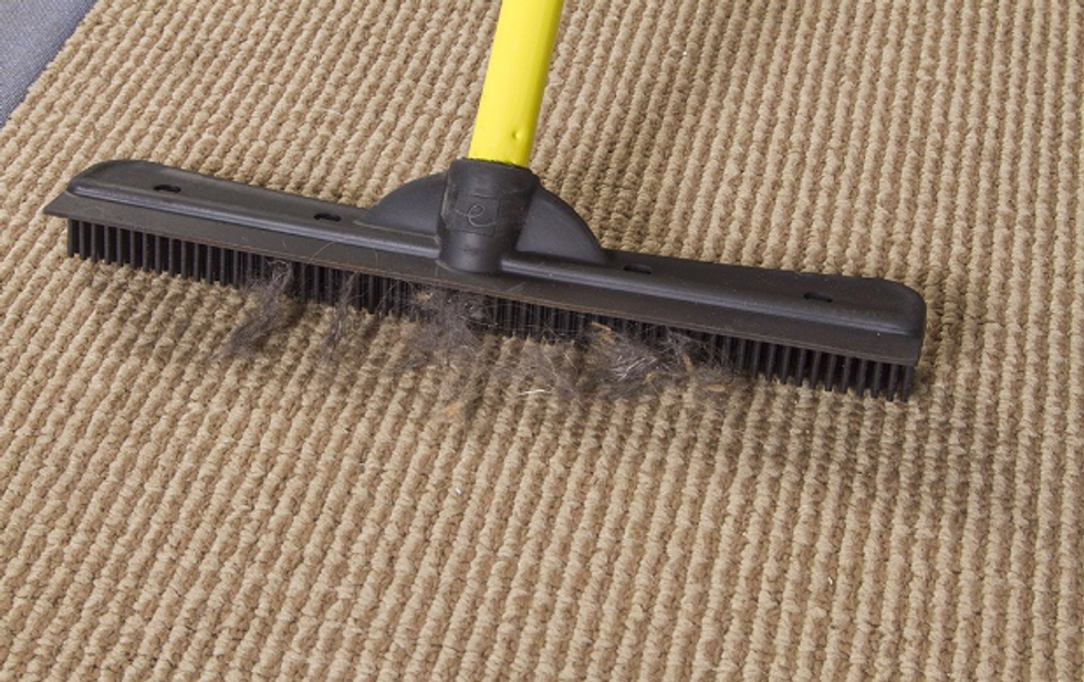 Its unique rubber bristles act like some bizarre pet hair magnet and lift it directly from the carpet. The broom can also be used as a squeegee for wet messes or just a regular broom on hardwood floors.This Broom and Dustpan Combo Makes Sweeping WAY Easier
