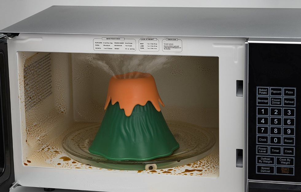 This brush has super soft bristles that are gentle on your electronics (or jewelry!). They also retract for easy storage. On the other side of the brush is a slim silicone wiper that fits in the tiniest crevices to clear out grime.The Eruption Disruption Microwave Cleaner Cleans Your Microwave Using Just a Little Bit of Water and Vinegar.