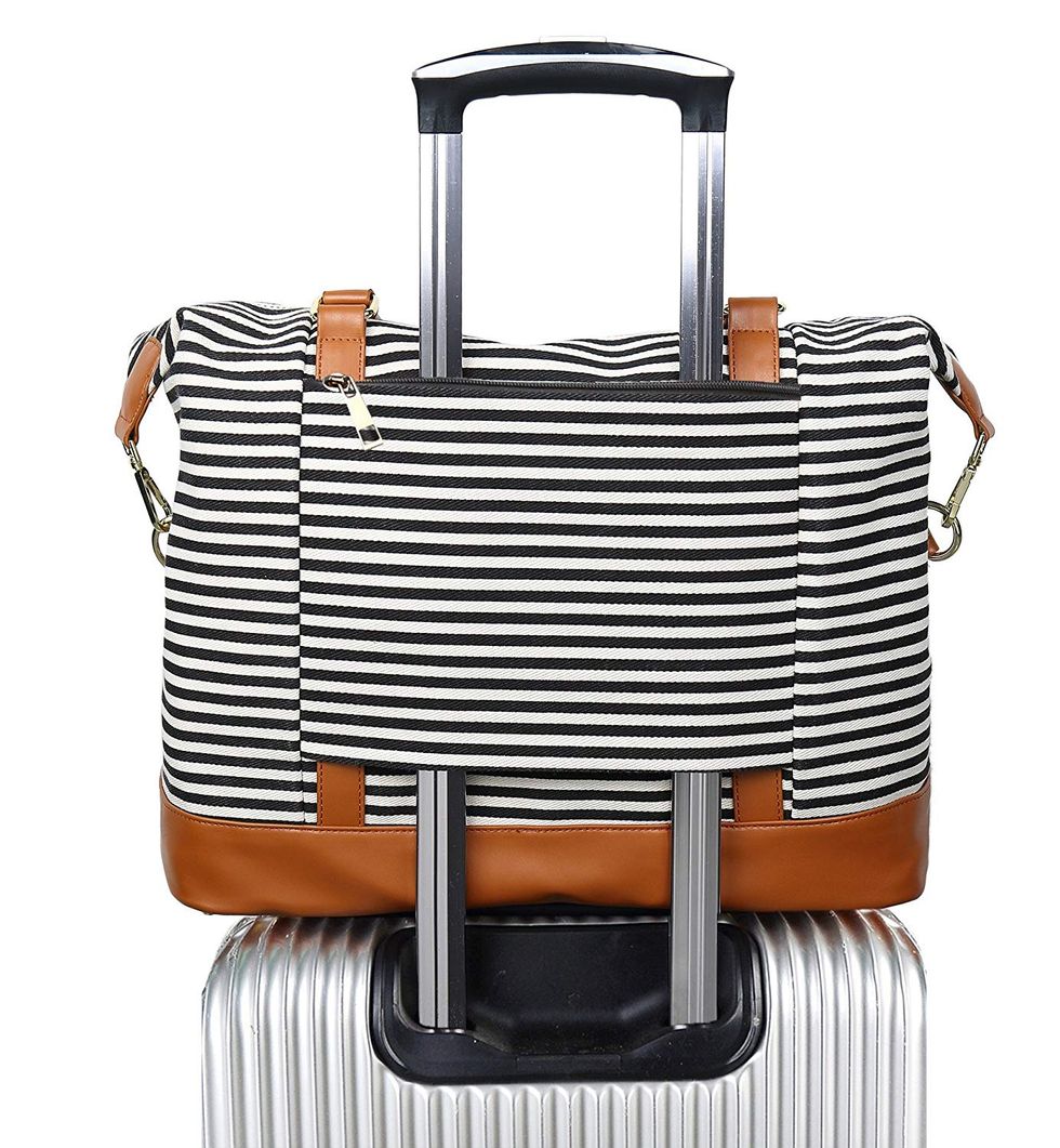 Um, hello to the most perfect travel bag I have ever seen in my entire life. Not only is this tote cute and classy and big enough to fit all my stuff for a whole weekend trip, but do you see that little slip on the back? The one that fits perfectly over the handle of your rolling suitcase? No more wobbling back and forth dropping everything you own on the way to the gate in the airport terminal.This Stress-Relieving Honey Lavender Tea