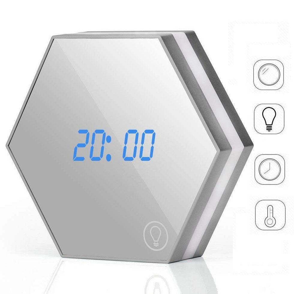 Use one side to wipe up liquid spills and the other to sweep up crumbs. And don't worry. It's dishwasher-safe.This Makeup Mirror Is Also an Alarm Clock