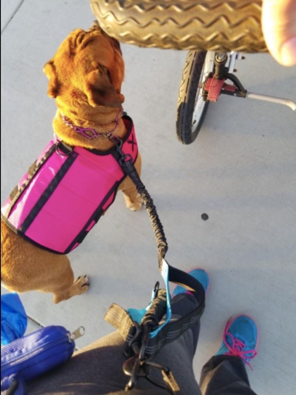 Whether you like to run with your dog or you're also pushing a stroller, this hands-free leash really comes in handy. It has two shock-absorbers to help provide a bit of “give" in the leash, to help reduce the amount of tugging you both feel.This Migraine Relief Cap Is Genius