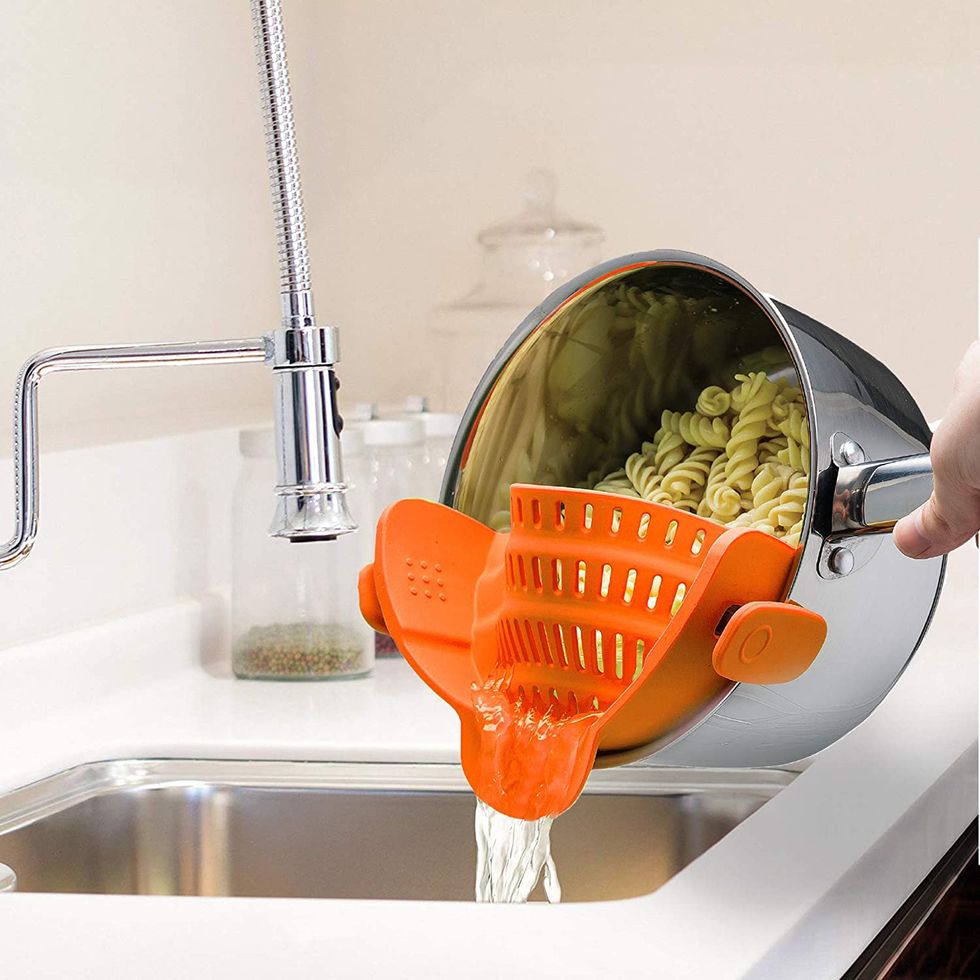 I'm always moving my big strainer around my cabinet when trying to find a pot. Then there's struggling with pouring hot water in just the right spot in the sink... enter this almost fool-proof clip-on strainer. So easy.No More Foggy Glasses