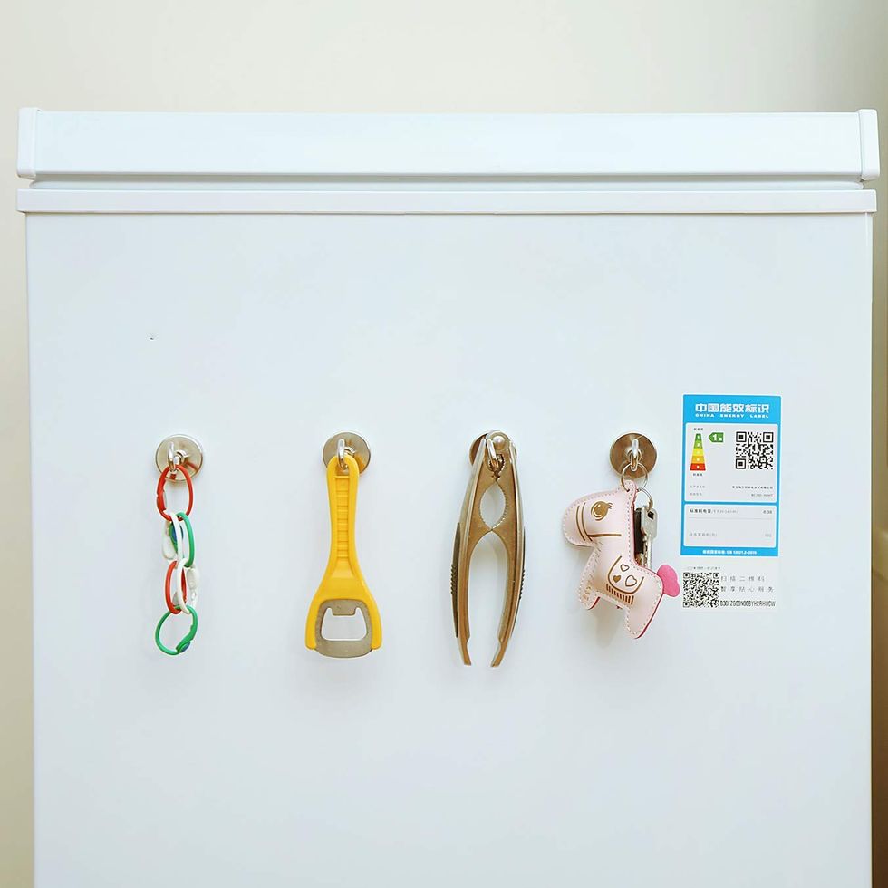 If you've got something heavy to hang but don't want to put holes in the wall or install racks, try these superstrong magnetic hooks instead. These tiny-but-mighty hooks can hold over 100 pounds, so the sky's the limit for their uses. They're incredibly popular with cruisers to organize their cabins. They also turn a metal door into an instant entryway organizer since they can hold heavily loaded backpacks and winter jackets with ease.This Desk Organizer Covers All The Bases