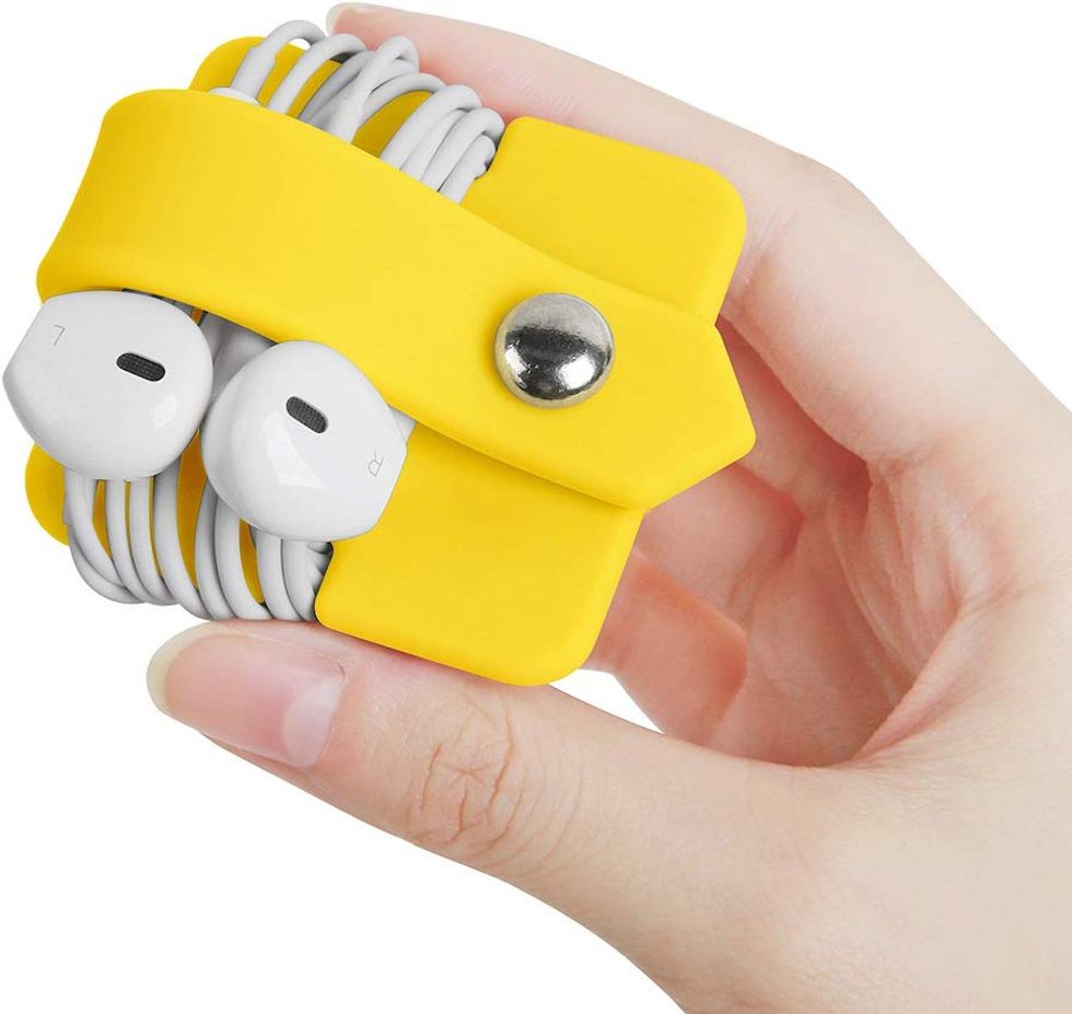 The bright, cheery color acts like a beacon in the depths of a messy handbag or backpack so you can easily find your headphones without having to endure a train commute or waiting room stay without your favorite podcast or tunes. Not into yellow? No problem, this sleek headphone organizer comes in 10 colors from brights to neutrals. Also great for keeping any type of charging cord neat and tidy.This Smartwatch Charging Stand Fits Anywhere