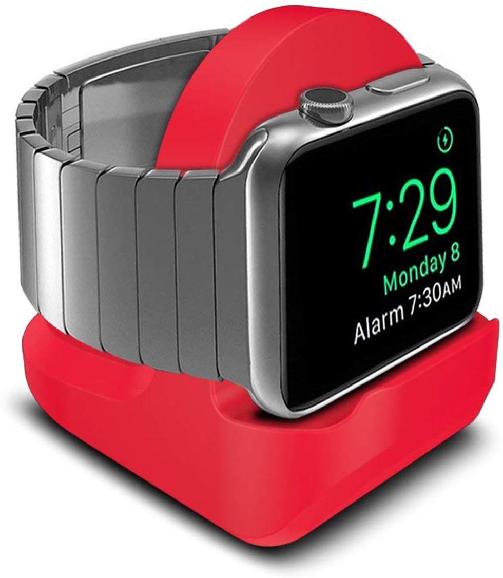 I like my Apple watch's minimalistic charger, but it's a little bit too sleekly designed and always slipping off my nightstand. This compact little smartwatch dock is not only adorable but so useful - just slip the charging cord into the silicone stand and it creates a nice little home for your watch to rest. Plus it's more convenient to use your watch as a bedside clock since it stays upright!This Travel Wallet Keeps You Sane