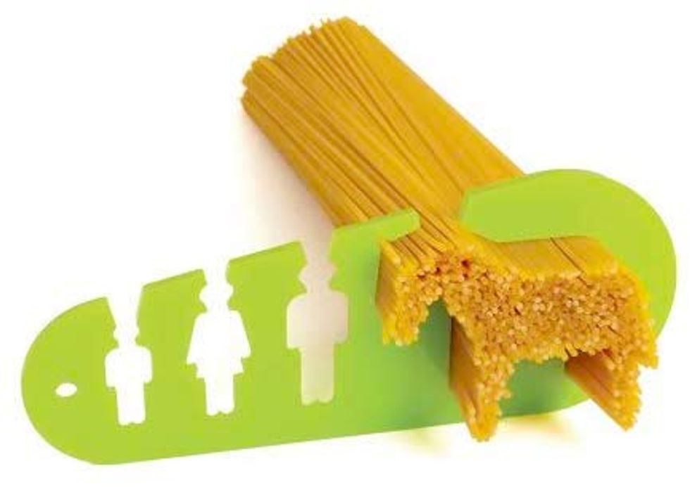 I'm always trying to guess the right amount of pasta to cook - half the box? three quarters? - so I don't end up with tons of leftovers that'll go to waste. This cheeky pasta measuring tool makes it easy to cook just the right portion of spaghetti whether you've got a pint-sized appetite or you're hungry as a horse. It ranges from a recommended kid-sized portion to a four-person serving (i.e. the horse).This Stainless Steel Travel Mug Is Completely Leakproof