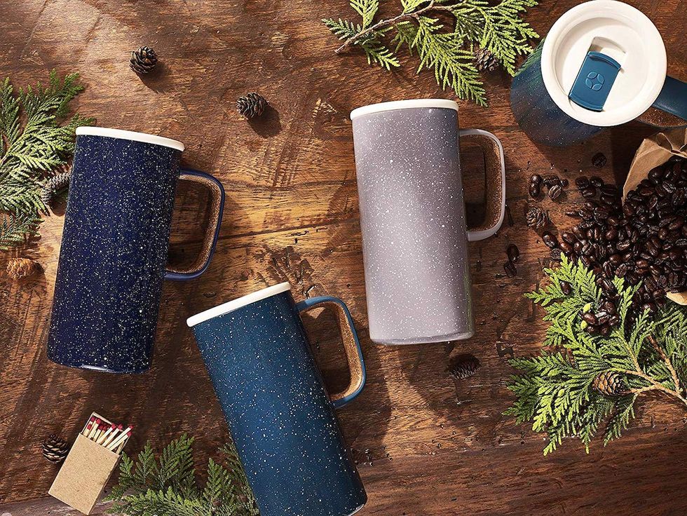 If you're looking for a unique, camping-inspired enamel travel mug, this is right in your wheelhouse. The BPA-free stainless steel mug has a comfy carry handle and fits perfectly into your car cupholder for the ideal commuting buddy. It comes in five gorgeous colors and is surprisingly affordable!This Dish Drying Mat Isn't An Eyesore