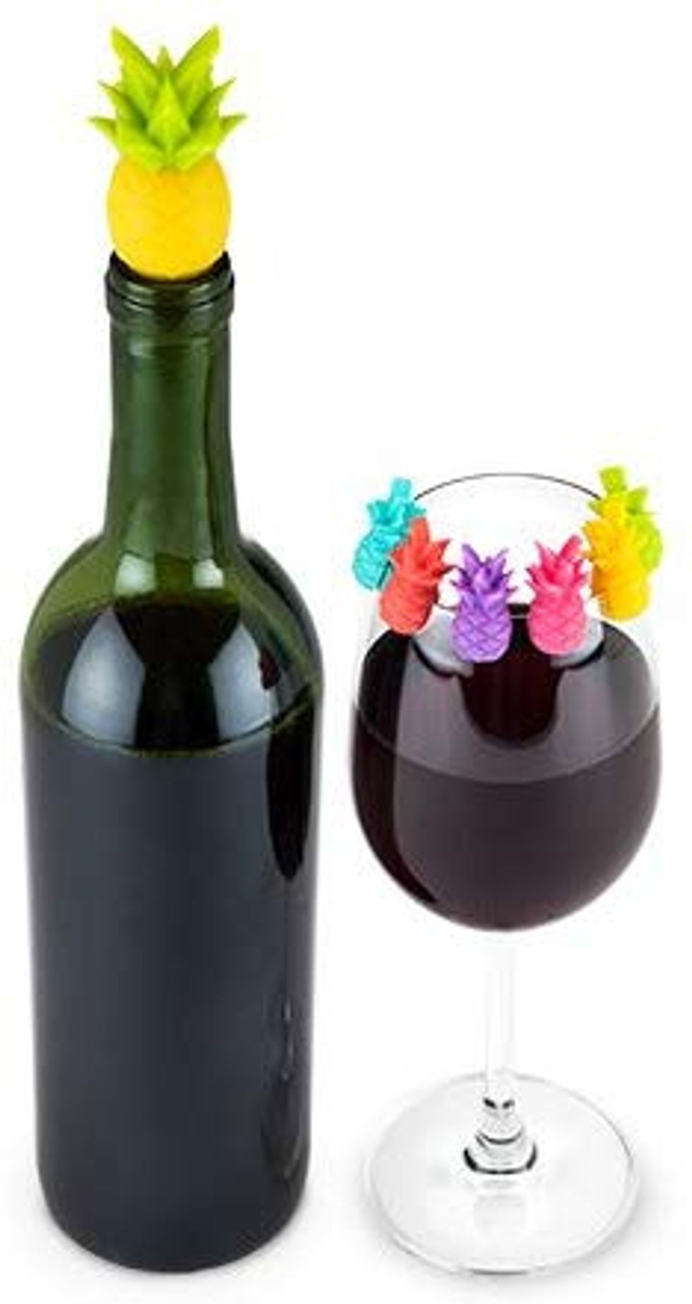 Want a cute way to keep wine fresh and make sure no one swigs the wrong glass at your next get-together? This pineapple wine stopper and charms set is an adorably effective way to do so! You get six colorful charms to mark everyone's glass - also available in palm tree with toucans or cute cactuses to shake things up a little bit!Trending