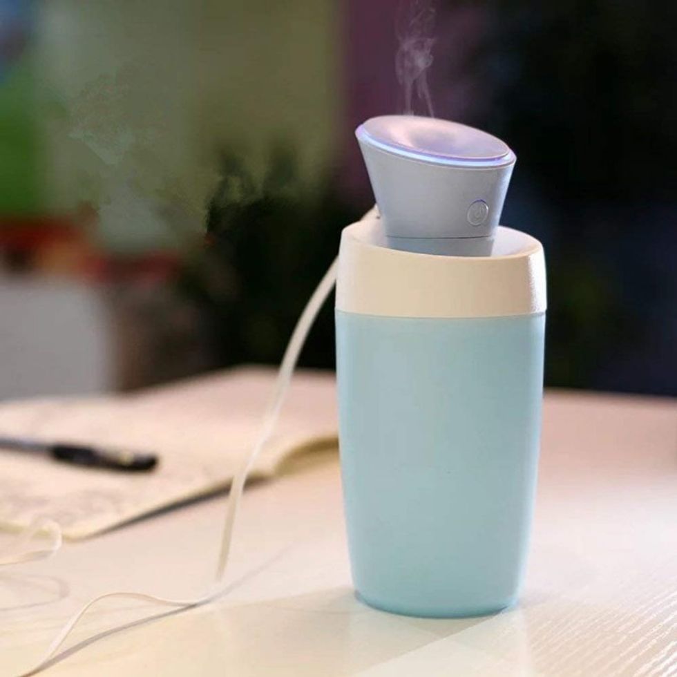 This mini humidifier is small enough to fit in your car's cup holder. Just plug it in using the USB cable and you're good to go.Organize Your Workspace With This Cable Management System