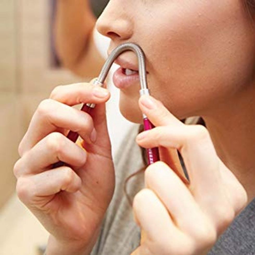 This facial hair remover grabs hairs from the root so they don't grow back as quickly, and it's easy to use. Just hold it against your face and turn the handles.This Self-Cleaning Brush Saves You From Touching Your Own Hair