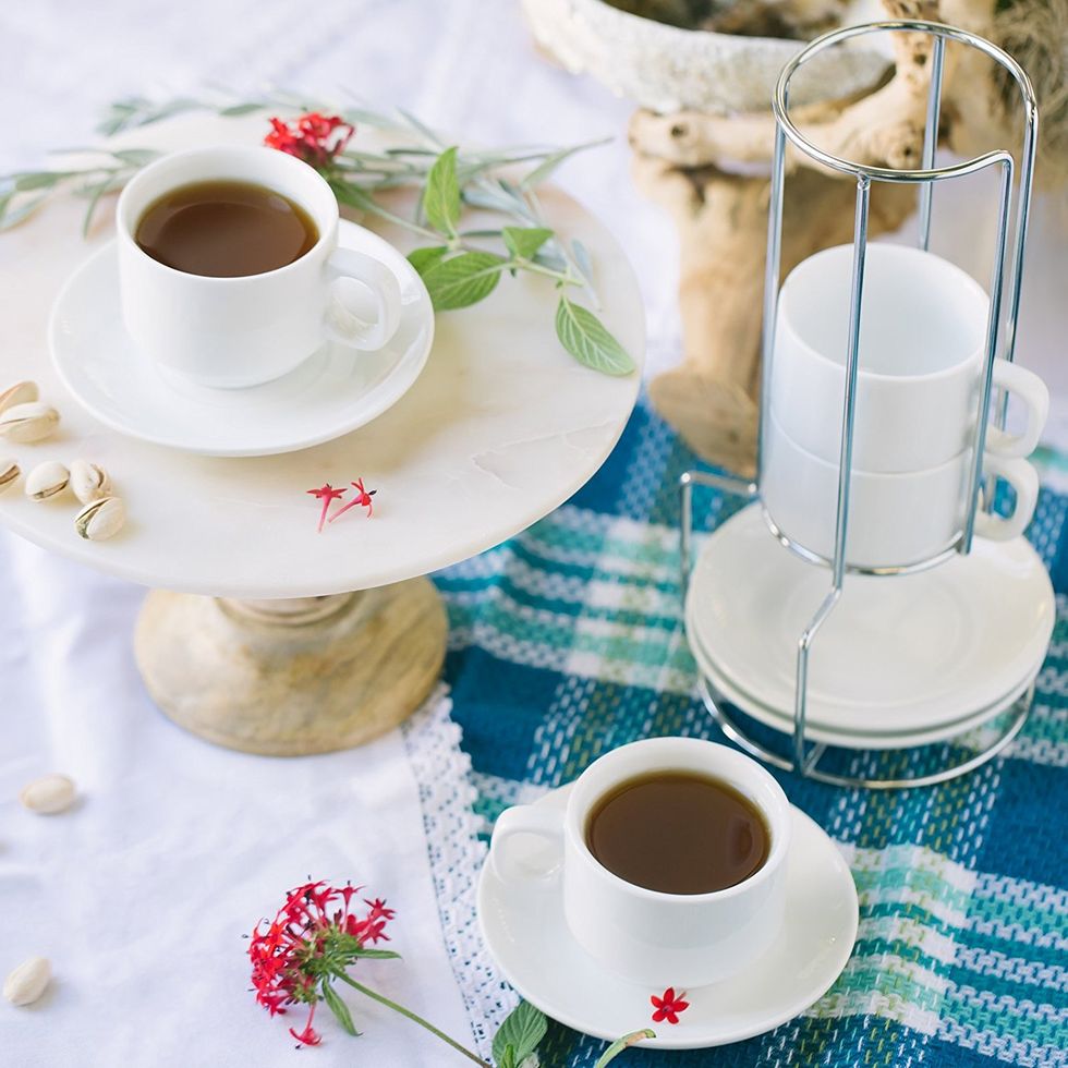 This makeup brush organizer is essential for the makeup fanatic. It holds so many! They'll just always be there at the ready for you.These Stackable Coffee Cups and Saucers