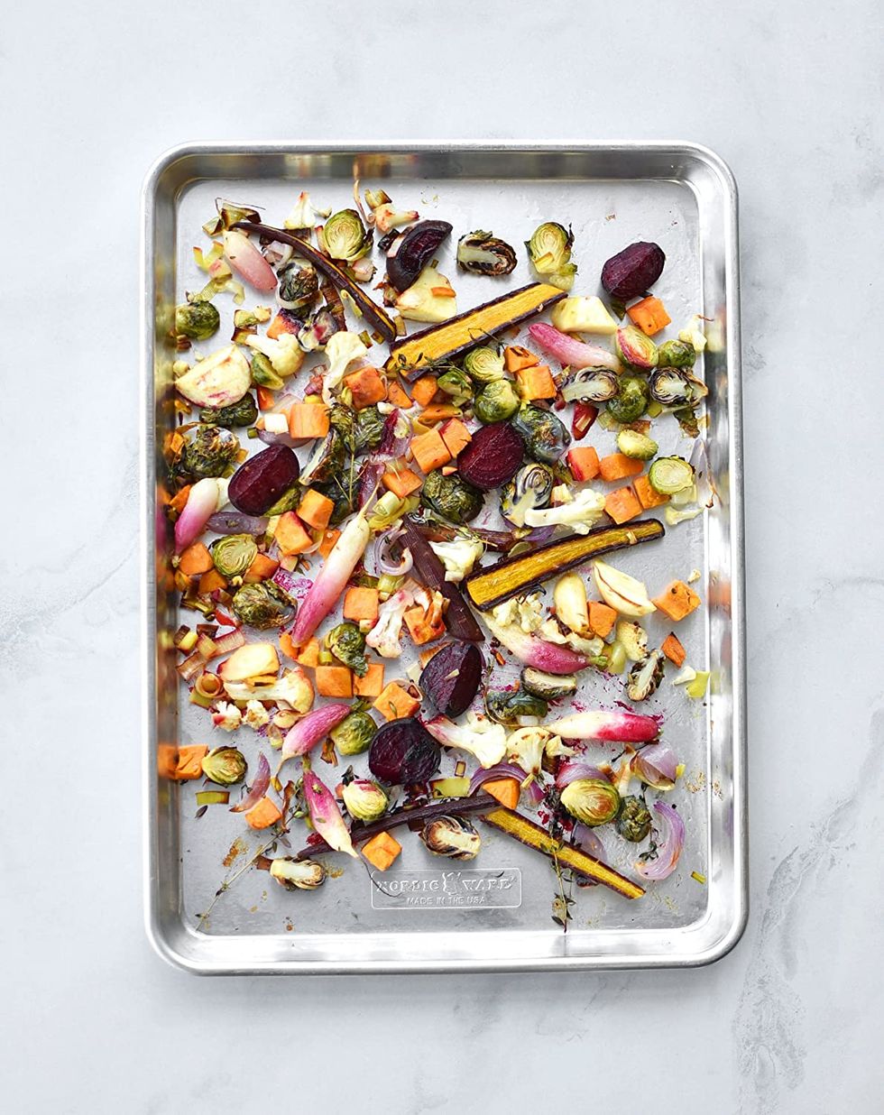 Gunked up, blackened, warped - all words to describe my sorry collection of sheet pans. So I'm upping my roasting game with these Nordic Ware Commercial Half Sheet Pans. They're made of pure aluminum so they'll never rust, the reinforced steel rim prevents warping, and they're easy to clean so they'll look the same as the day you bought 'em for years to come.