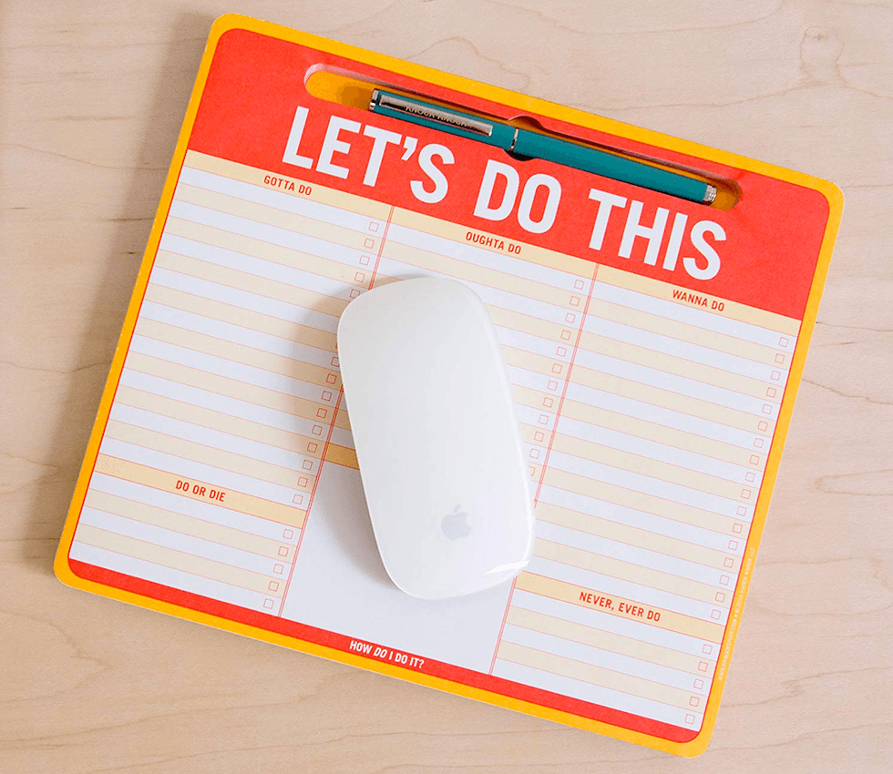 As a mom who works from home, I'm in charge of doing all the things, from making doctor's appointments to managing snack stocks. Oh, and working. NBD. Except sometimes my sleep-deprived brain forgets really important things. Not anymore with this motivational mousepad notepad with sections like "Gotta Do", "Wanna Do", "Do Or Die" and "Never, Ever Do" to keep my priorities in order.Superpower: Stopper Of Kitchen Injuries