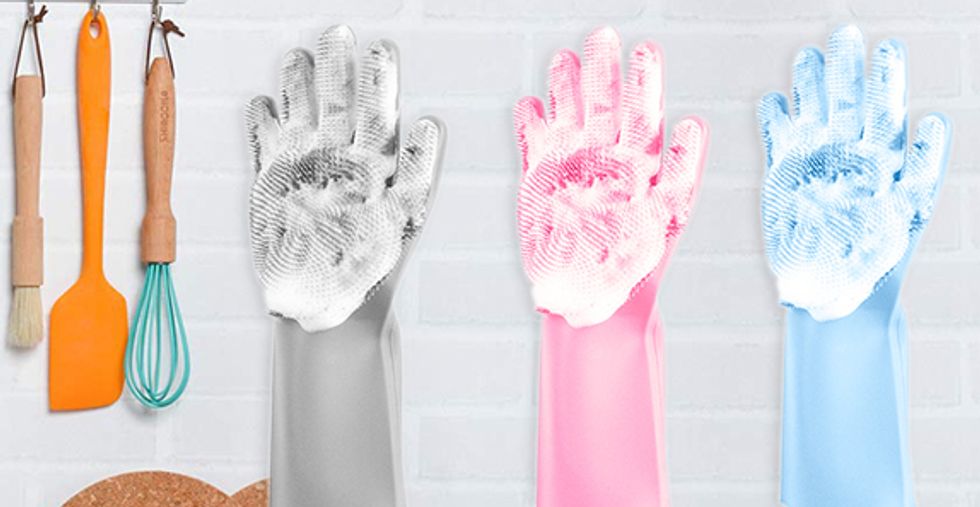 No one likes a gross sponge. Even the so-called "eco-friendly" and reusable ones can collect stuff like mold, so I generally buy ones that you need to throw out after a little while and it makes me feel so guilty. But I recently stumbled upon these nifty gloves that come with scrubbers on the palms and I love them. Not only are they effective in getting out stuck-on food, they're also made of silicone that fully dries between uses and stops things from "growing" on them. Plus, they protect your hands from harsh dish soap, so it's a no brainer.This Special Ice Cube Tray That Makes Satisfying, Pebble-Shaped Ice