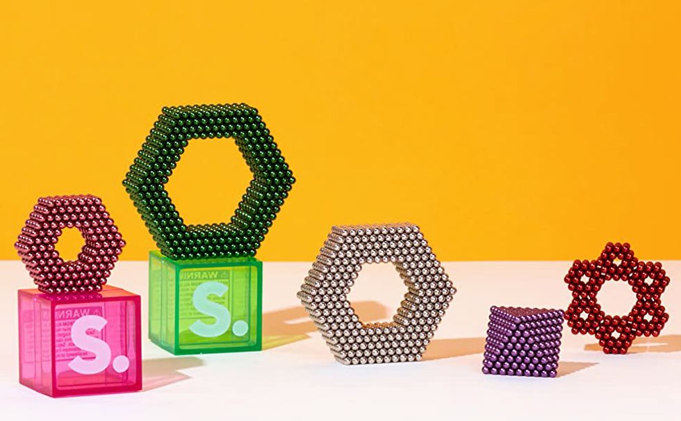via AmazonTalk about tactile fun! This set of tiny magnetic balls is the perfect thing to fidget with while on a Zoom call. You can form them into shapes and mold them into sculptures. Then just smoosh them together and store them in their cute carrying case. They come in a bunch of different colors. (The purple set is my fave.)