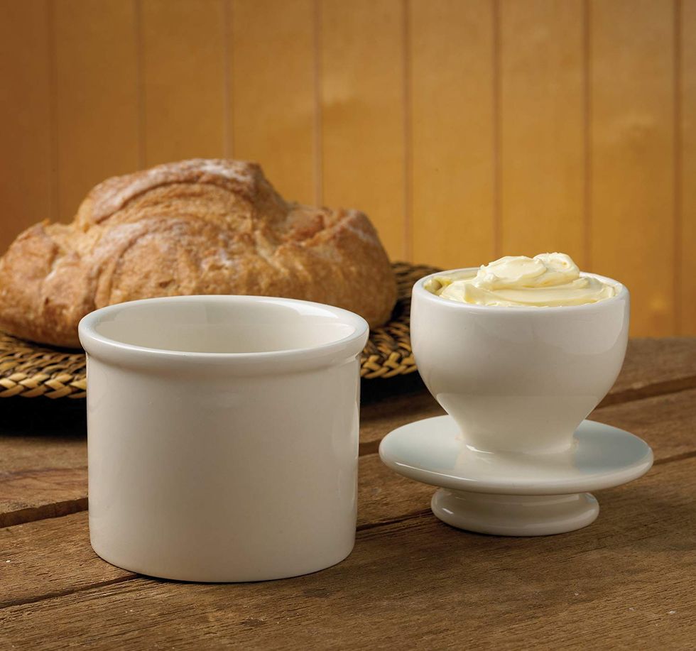 This butter keeper is such a good idea that I'm now gifting it at every housewarming and bridal shower. Instead of using cold, hard butter out of the fridge, you just reach for the butter keeper, which sits on the counter and keeps butter soft and fresh for up to 30 days with no refrigeration. The secret is a little bit of water in the air-tight base that keeps the temperature constant. (Just remember to change the water every three days.)This Cupcake Scoop Is the Easiest, Neatest Way to Dispense Cake or Muffin Batter