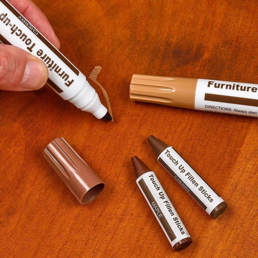 I was skeptical of this product, but it really does make scratched or stained wooden furniture look better! The touch-up set comes with six markers and six wax sticks in a range of colors: Maple, Oak, Cherry, Walnut, Mahogany, and Black. Find the best color match for your furniture, then use the wax stick to fill in the scratch and cover with the marker for the finishing touch.Surprise Your Sweetheart With This Customizable Gift Book for Lovers
