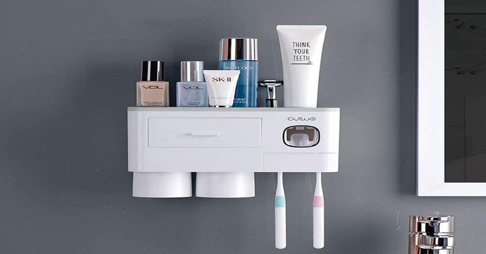 This Toothbrush Holder/Toothpaste Dispenser Saves Some Serious Space