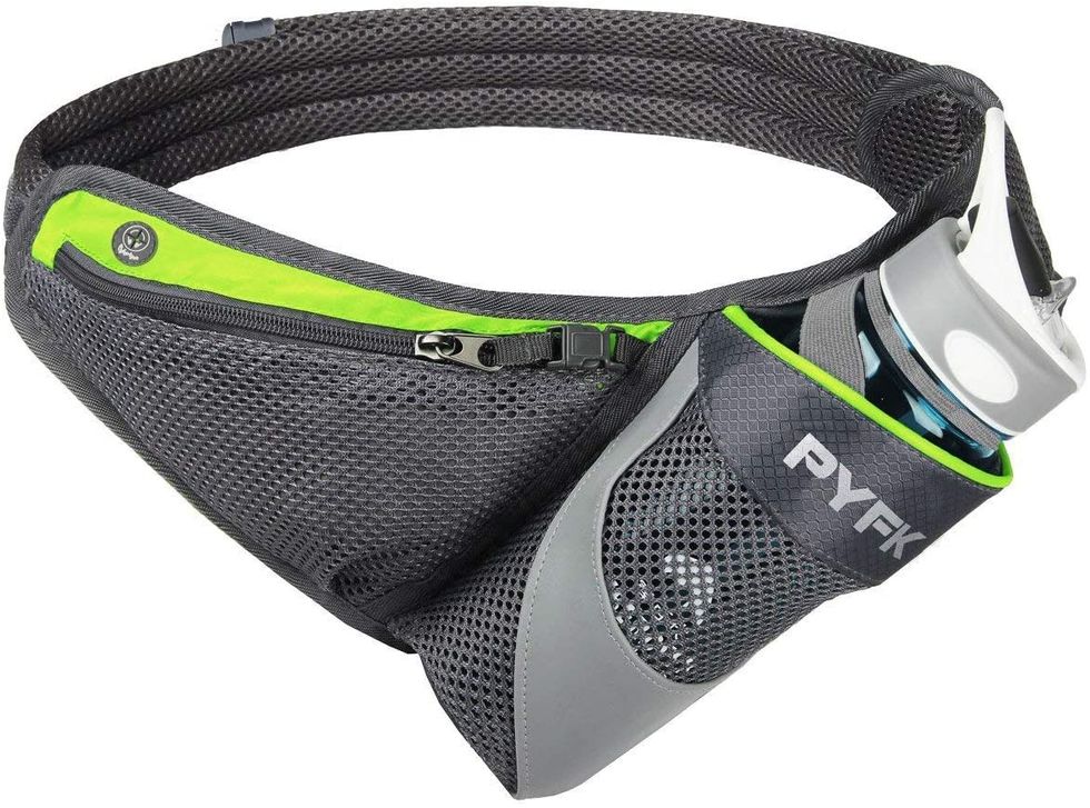 This running belt is a perfect way to harness your hydration when you hit the open road. It has space for your phone, keys, and even a convenient slot to slide your headphones in.