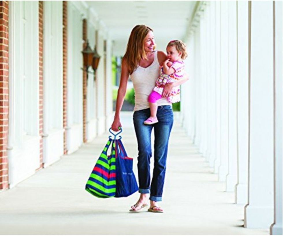 For some reason, I've decided that I must carry in all the bags in one trip, even if it kills me. So I strategically place bags on my shoulders and along both arms, and I suffer mightily to get it done. The Mighty Handle distributes the weight and allows you to carry more in each hand - no more forearm bruises!