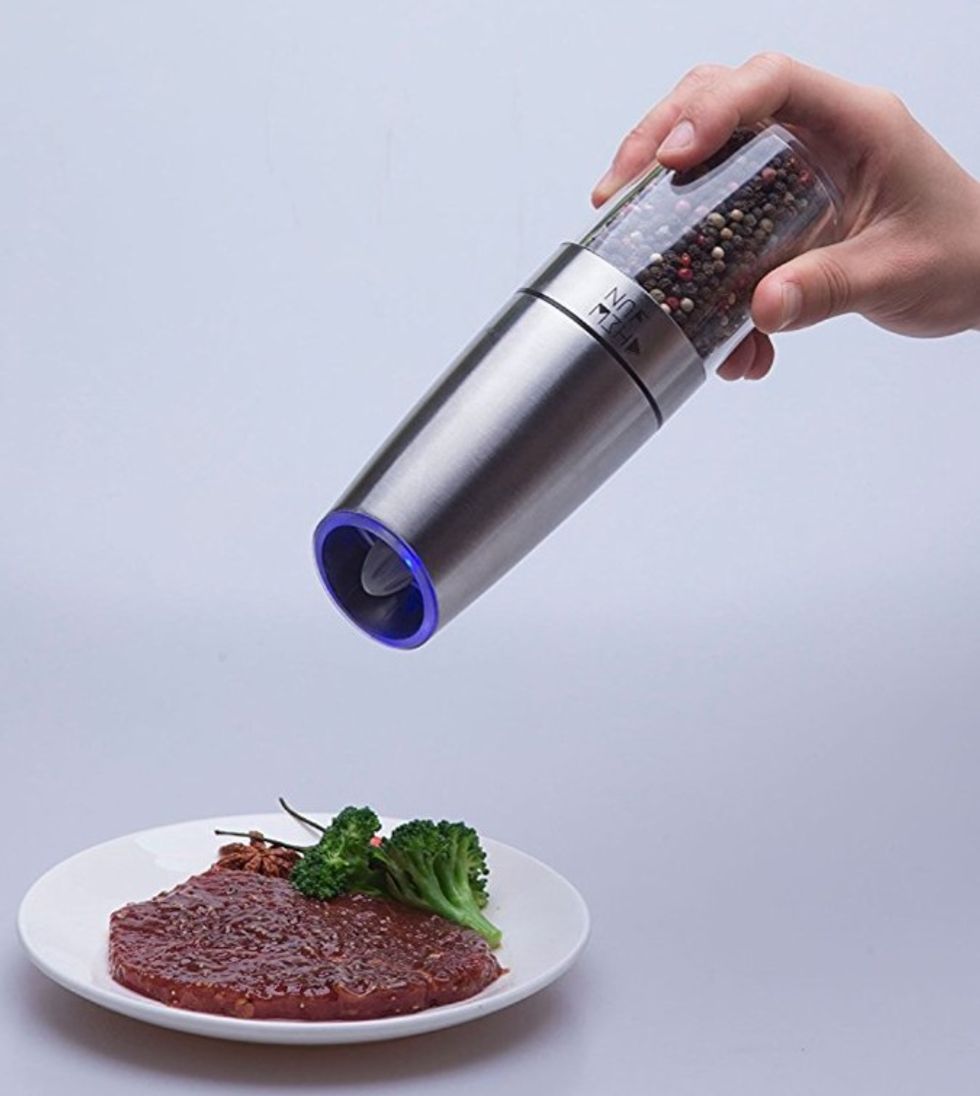 This is the pepper grinder of the future. Just flip it over and the Gravity Electric Pepper Grinder whirs to life, giving you adjustable freshly ground pepper under the glow of a blue light, because why not?