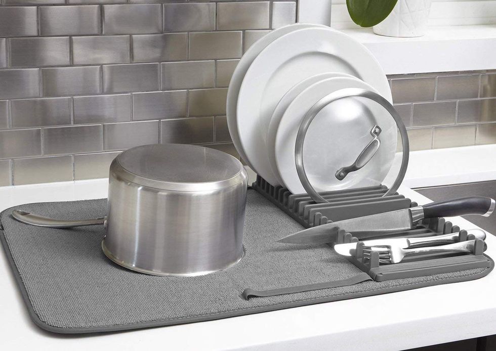 If you don’t use a lot of dishes and want to save space in your kitchen, this set is a brilliant drying rack option. The microfiber mat dries quickly and the slotted rack can actually move between one end and the middle for more drying flexibility. When your dishes are done, the whole set folds away and you have your countertop back!This Emergency Car Tool
