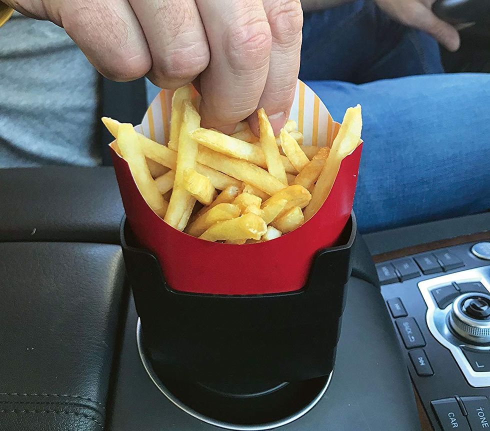 Speaking of travelers, you know that normal wallets tend to not cut it when it comes to keeping all of your cards, IDs, and documents in order. This RFID-blocking wallet keeps your information safe while also having the perfect compartment for everything you need. The wallet comes in dozens of colors which have your standard pockets as well as a sleeve for your boarding pass and a section big enough for your passport. Don’t just travel efficiently; travel in style.This French Fry Holder for Your Car