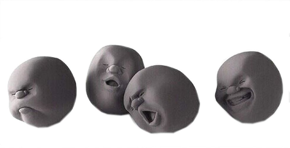 This silly lamp looks like paint spilling out of a can, but it's really a source of light for your desk or nightstand! It comes in three vibrant colors: the purple pictured here, bright blue, or bright yellow! It is perfect for the artsy desk of a creative soul! I think you actually get bonus points if you use it in an art studio in which you actually paint. I bet it would really fool people.These Human Face Stress Toys
