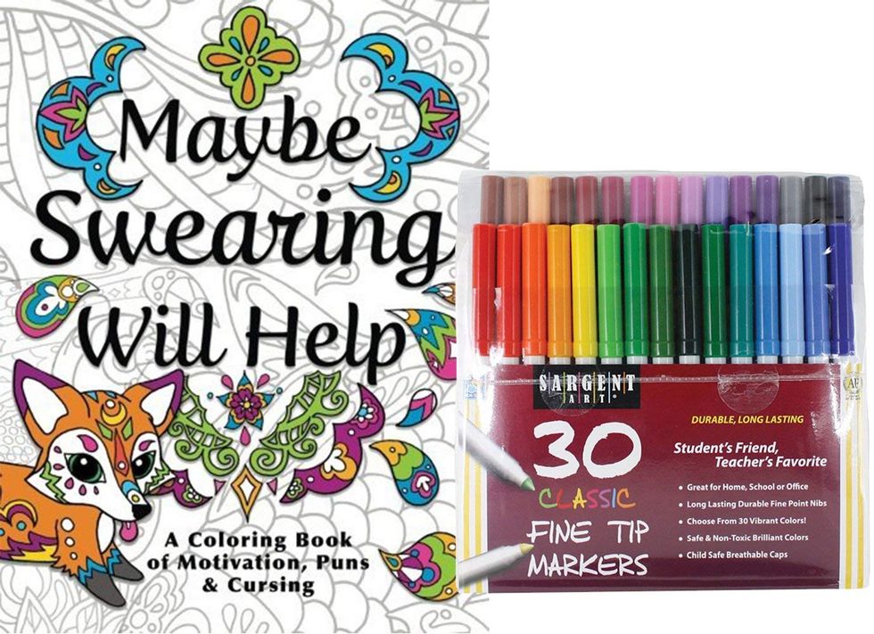Now, this is what I am talking about. If you do not own a scarf that is also a flask that you can drink directly from, what are you even doing with your life? You need this! It's a real scarf with a hidden eight-ounce bladder inside. It comes in seven fun and funky patterns and is perfect for sneaking drinks into concerts or festivals!This Adult Coloring Book