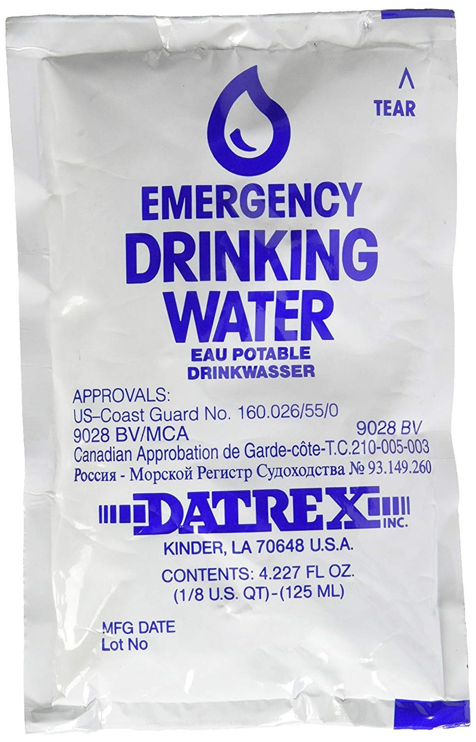 With a longer shelf life than bottled water, these emergency water pouches are a smart addition to any disaster preparedness kit. Heavily filtered at FDA-approved facilities, the water comes in 4.2-ounce polymer foil pouches, in cases from 12 to 128.Plenty of Extra Batteries