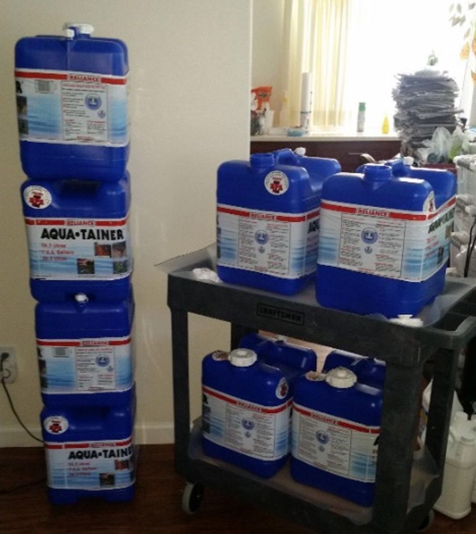 When I was little, my mom stored emergency water in bleach bottles. Apparently, the drops of bleach left in the bottle kept the water pure. I have no idea if this is actually a good idea, so instead I'm getting these water purification tablets.These Water Storage Containers