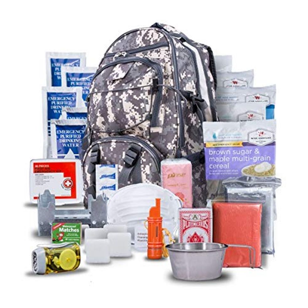 If you picture yourself surviving the apocalypse on the road with only your wits and a few supplies, this 5-day survival backpack might be the perfect emergency kit for you. The rugged, camo backpack comes stocked with essentials like food, a portable stove, stainless steel cup, first aid kit, flashlight, and even a deck of cards.This Complete Disaster Bag