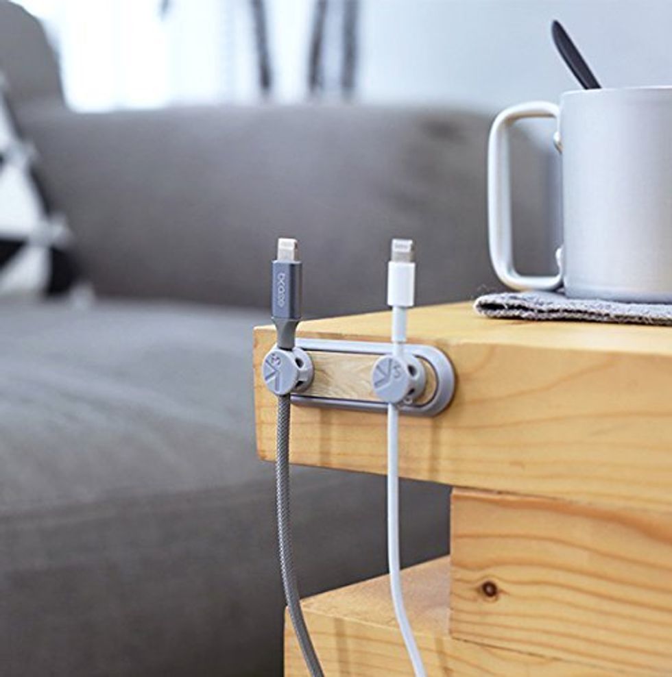I was getting sick of having to pick all my various charger cables up off the floor, so I went searching for a solution and found this. I like the wood-grain appearance and the fact that each cable clip fits three different sizes of cables.A Simple, Refreshing Toner