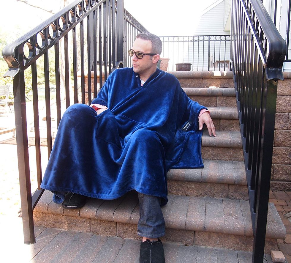 Speaking of taking your lounging to the next level, why not invest in a blanket poncho to show you're serious about comfort? It starts as a ridiculously soft blanket, but by attaching the magnetic snaps, it serves as a wearable poncho. It even has a pocket in front (perfectly sized for a phone and Snickers bar, as luck would have it).Listen to Music and Look Awesome at the Same Time With This Bluetooth Beanie