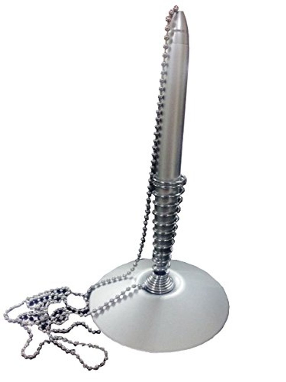 I don't ask for much. I just want a pen and paper handy when I need it. So, I dutifully stock my desk but you'd better believe that next time I need to jot something down there isn't a pen in sight. I don't just want one of these bank-style, chained Desktop Pens. No. I want one for my desk, one for my car, and one for that little counter in my kitchen where all the junk lives. I want my pens chained up everywhere, and my thieving family can find their own dang pens!
