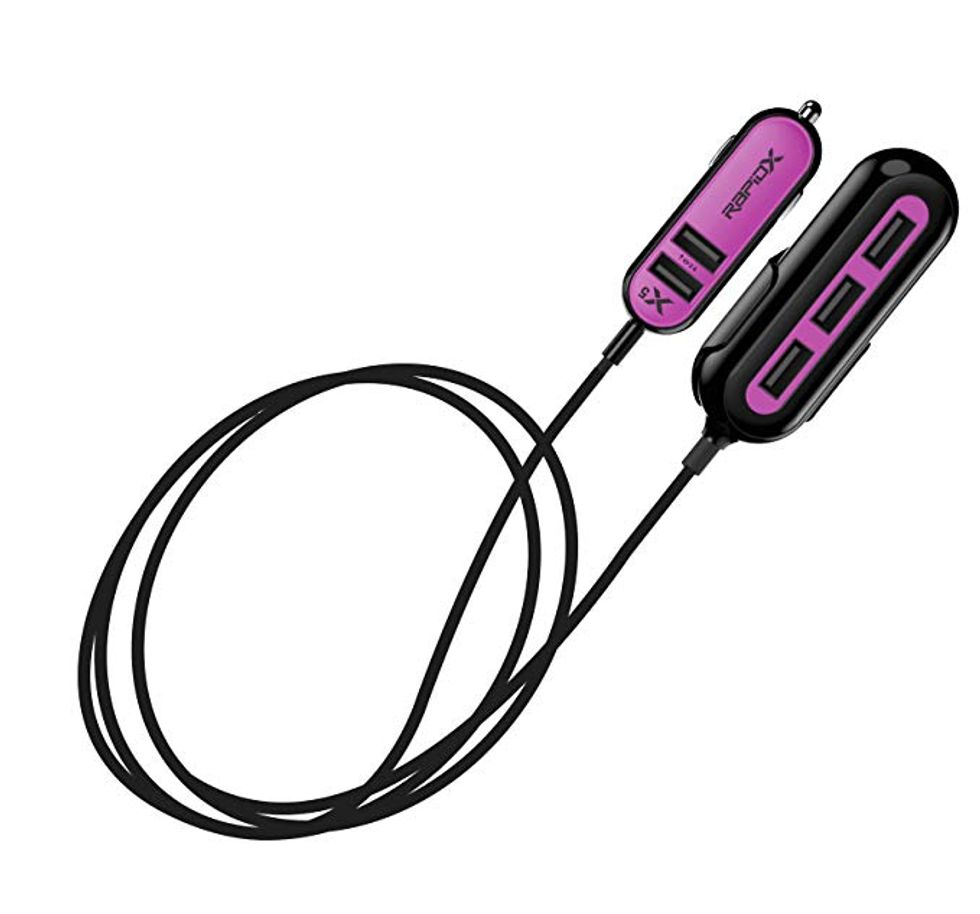 Here's one of those why didn't I think of that? products. With two USB ports on the plug itself, and a five foot cord ending in three additional ports, this Car Charger makes all other car chargers look foolish. Of course you need to charge up the kids' devices on those long rides. With up to 2.4 amps per port, the RapidX charges up to twice the speed of typical car chargers. This thing is brilliant!