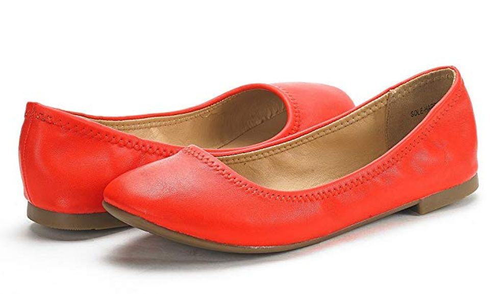 Are bright coral flats something that will be in style forever? Nope. That's why you don't want to spend a ton of money on them, but you do want to get them. These Happy Walking Flats will set you back around $20 and they come in so many colors that you might have a hard time deciding. I'm in love with the coral, but maybe you're more into bright yellow, or leopard print, or the shimmery rose gold champagne color. Of course, there's also the basic colors so your feet can be comfy and cute with any outfit.