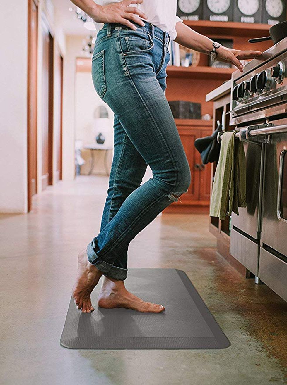 I definitely don't love standing in front of my sink or stove, but I do it anyway. Every dang day. My legs and back ache by the time I'm done prepping, cooking, and cleaning up. I could probably use a couple of these Anti Fatigue Mats.