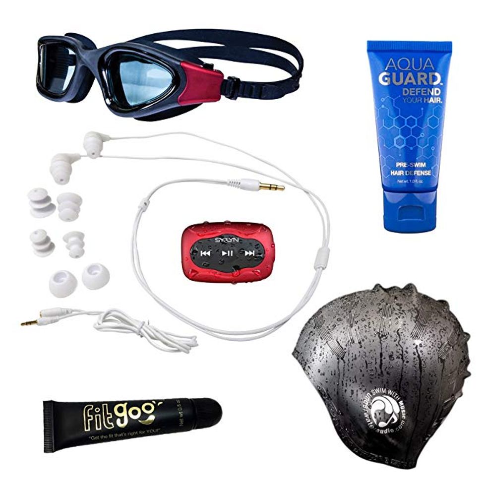 This set comes with everything! I love to swim. But I'm also easily bored. Swimming laps is the best exercise for me, but without music I just can't stick it out for a full workout. Finding a music player that works for swimming isn't necessarily easy or affordable, but this set of Swimbuds Headphones and Waterproof MP3 Player has it all. Not only do you get the music, but a bunch of handy swimming accessories too, like that awesome, ear covering swim cap!
