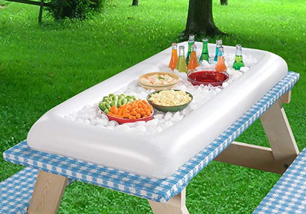 With an inflatable rim to hold all the ice in the center, this Inflatable Serving Bar will keep your drinks cold and your potato salad non-toxic even on the hottest days. So much more fun than hiding all the drinks away in coolers and having the creamy dressings turn into biohazards! This extremely portable set up can go wherever you go this summer, ensuring that your beverages stay cold and you stay well fed and healthy!