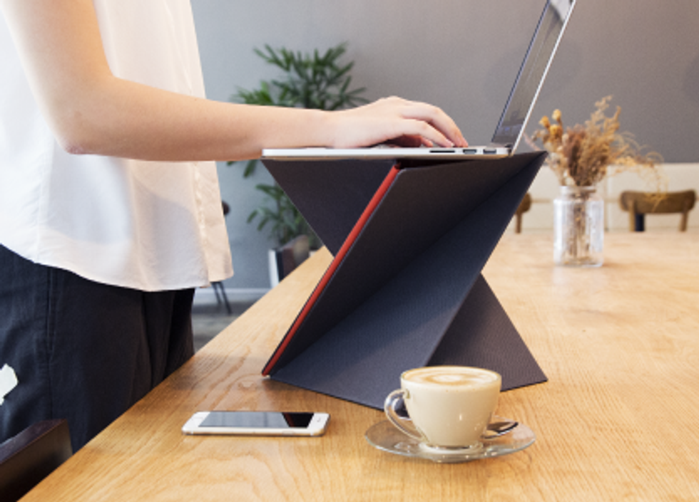 When not in use, this lightweight Portable Standing Desk folds flat. When you feel the need to stand up, simply twist it open and you've got yourself a perfect perch for your laptop.