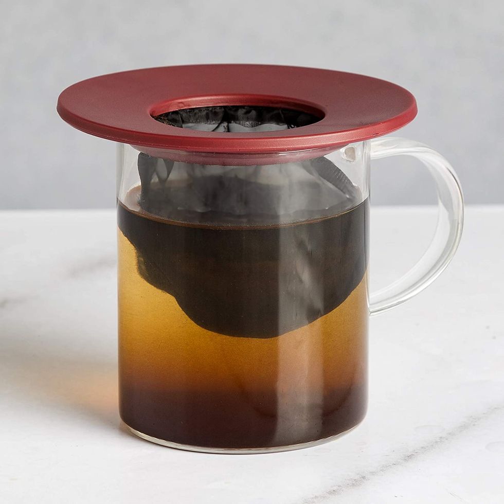 This pour over coffee maker couldn't make itself more convenient - it comes with the lid with built-in extra-fine mesh filter so you can get started with your caffeine intake right away! The slim, portable design is so great for at the office, on trips or camping when you can't go without your strong brew but don't want to tote along your whole coffee set up. And it has over 2,000 reviews for ease of use and quality cups it turns out time after time.