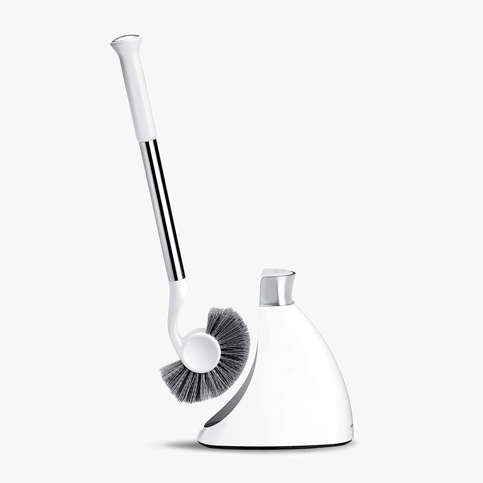 Into every adult's life some toilet cleaning must fall, and I for one loathe this task more than any other. But what makes it a little bit better is this toilet brush with its sleek design and thoughtful features. The crescent-shaped brush is made to clean up under the rim where a lot of the grossness lives, and the stiff bristles easily clean tough stains. My favorite part's the caddy - it magnetically attaches to the brush so there are no drips, because if there's anything worse than cleaning the toilet it's cleaning up toilet water.