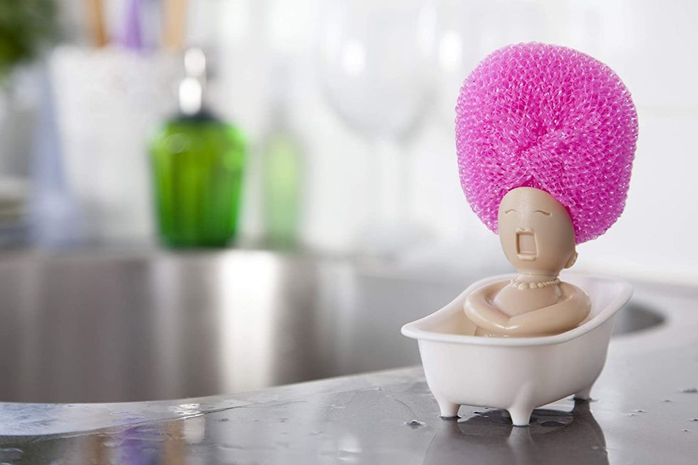 Grown-up life is kinda filled with boring tasks like washing dishes and cleaning the kitchen, so why not make it more fun with little treats like this sponge holder? I love how the sponge makes up this little bathtub singer's hair, it's so adorable. And it's useful since sponges get gross when they sit around in their own dirty water, with this little gadget they drain easily and stay yuck-free!