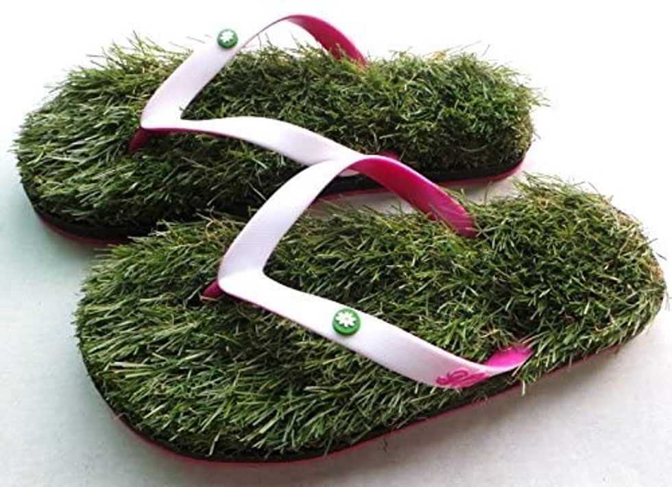 Remember the joy of running barefoot on the grass when you were a child? I love the sensation, but can't get my grown-up mind past all the bugs or dog poop that could be lurking right under my bare toes. These grass flip flops are the best of both worlds - it feels like you're walking barefoot but you get to keep your feet clean. And they're super cute to boot!