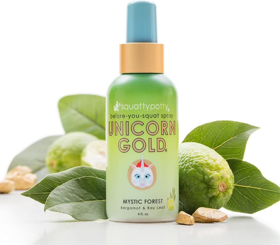 Look, we've all been there - you're at a dinner party or cocktail hour at a friend's place and you've, well, gotta go. Bad. Don't hold it in anymore, that's no good for you! Instead, spritz this genius Unicorn Gold toilet spray in the water before you go, and it's like nothing happened at all. Seriously, I use this in my own house and it definitely works to cut down on unfortunate bathroom odors.