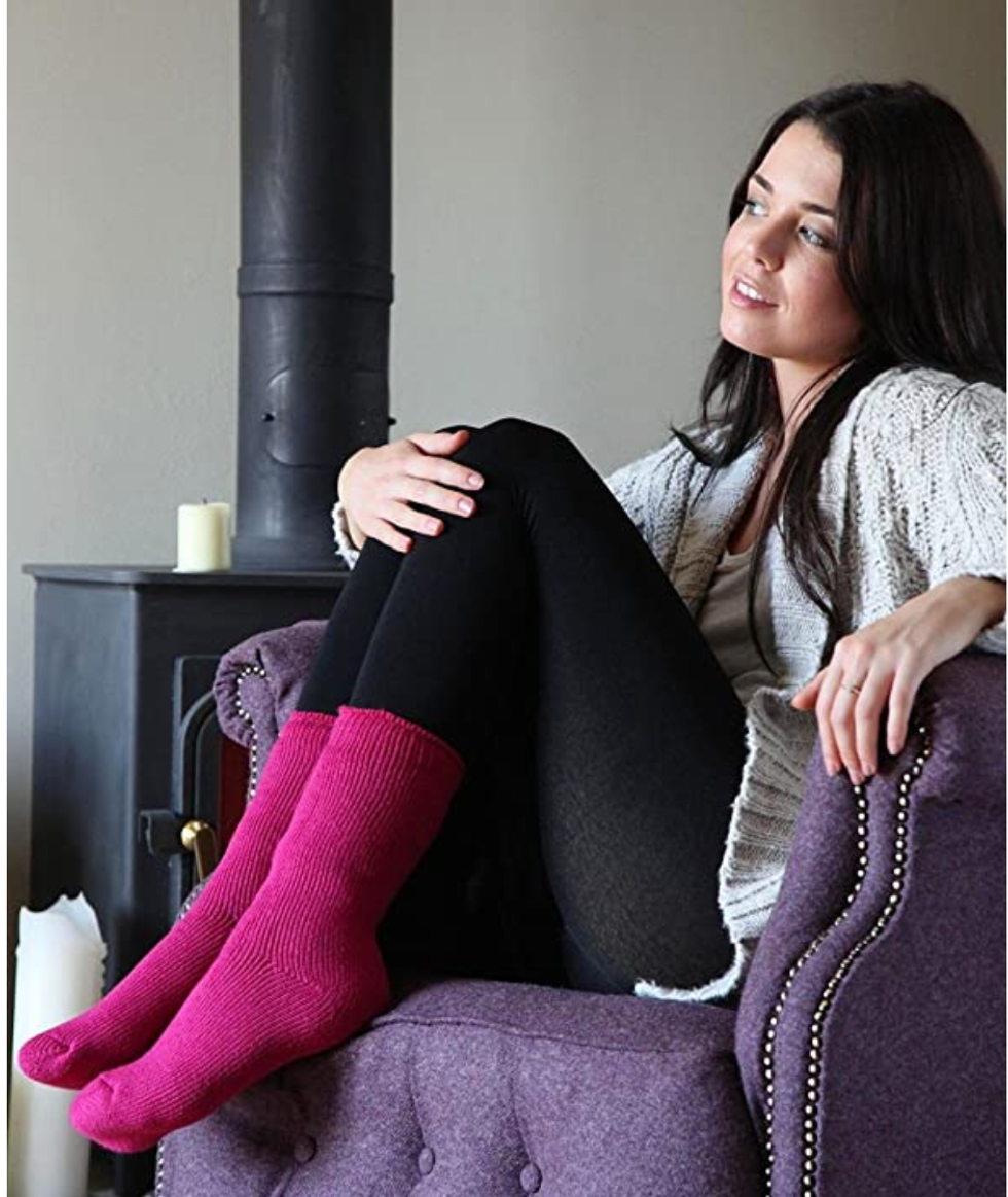 I am always cold year-round unless it's sweltering outside. And the coldest parts are always my feet, even in sheepskin-lined slippers! These thermal socks though, they're the one thing that works to keep my feet toasty, especially in winter. I wear them with my big snowboots to the sledding hill or skiing and my toes never get even a little cold. You can wear them inside too for extra warm, extra cozy feet.